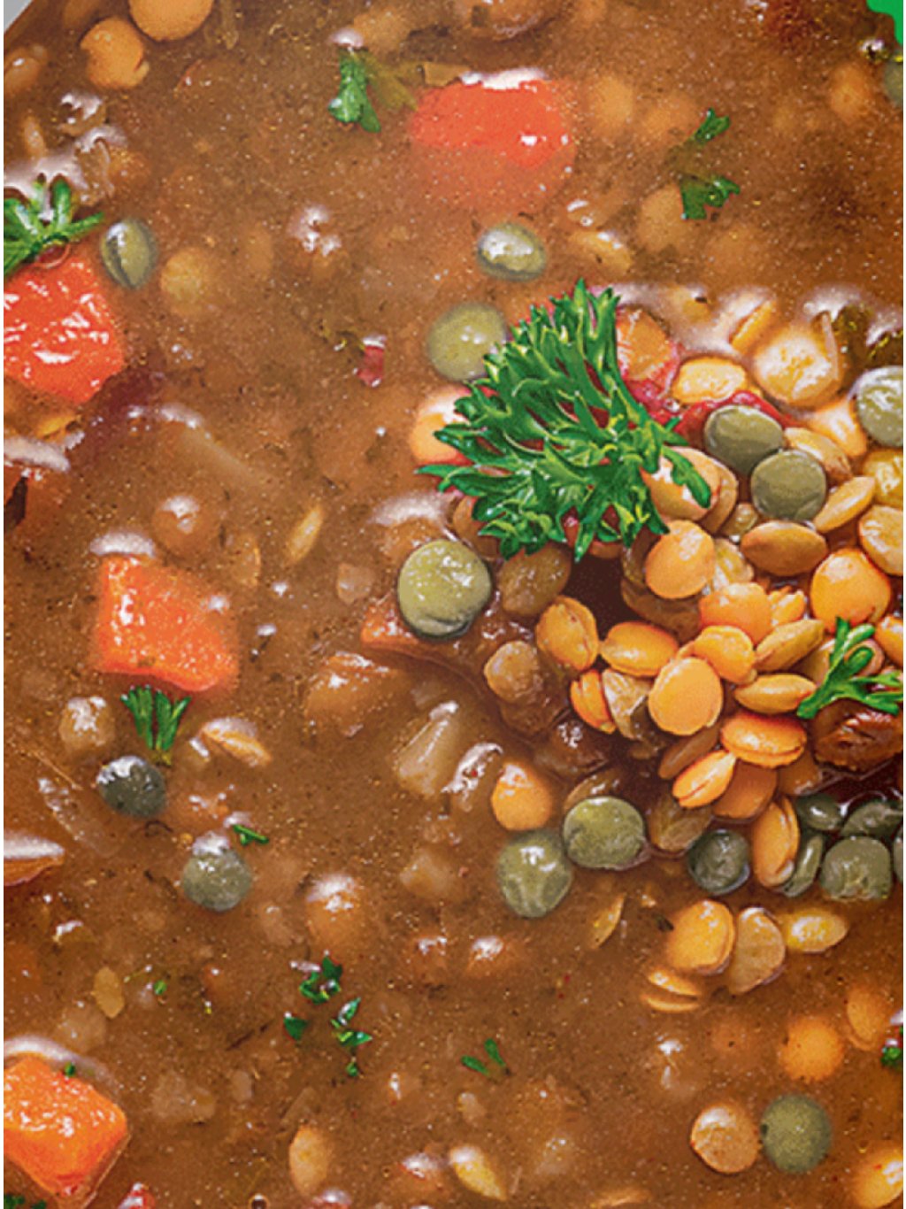 Vydatná a chutná 400g porce 100% organické polévky ze tří druhů čočky (hnědá, červená, zelená), vybrané bio zeleniny a brambor zachutná nejen veganům. Jemně dochucená čočková polévka podpoří váš zdravý životní styl.