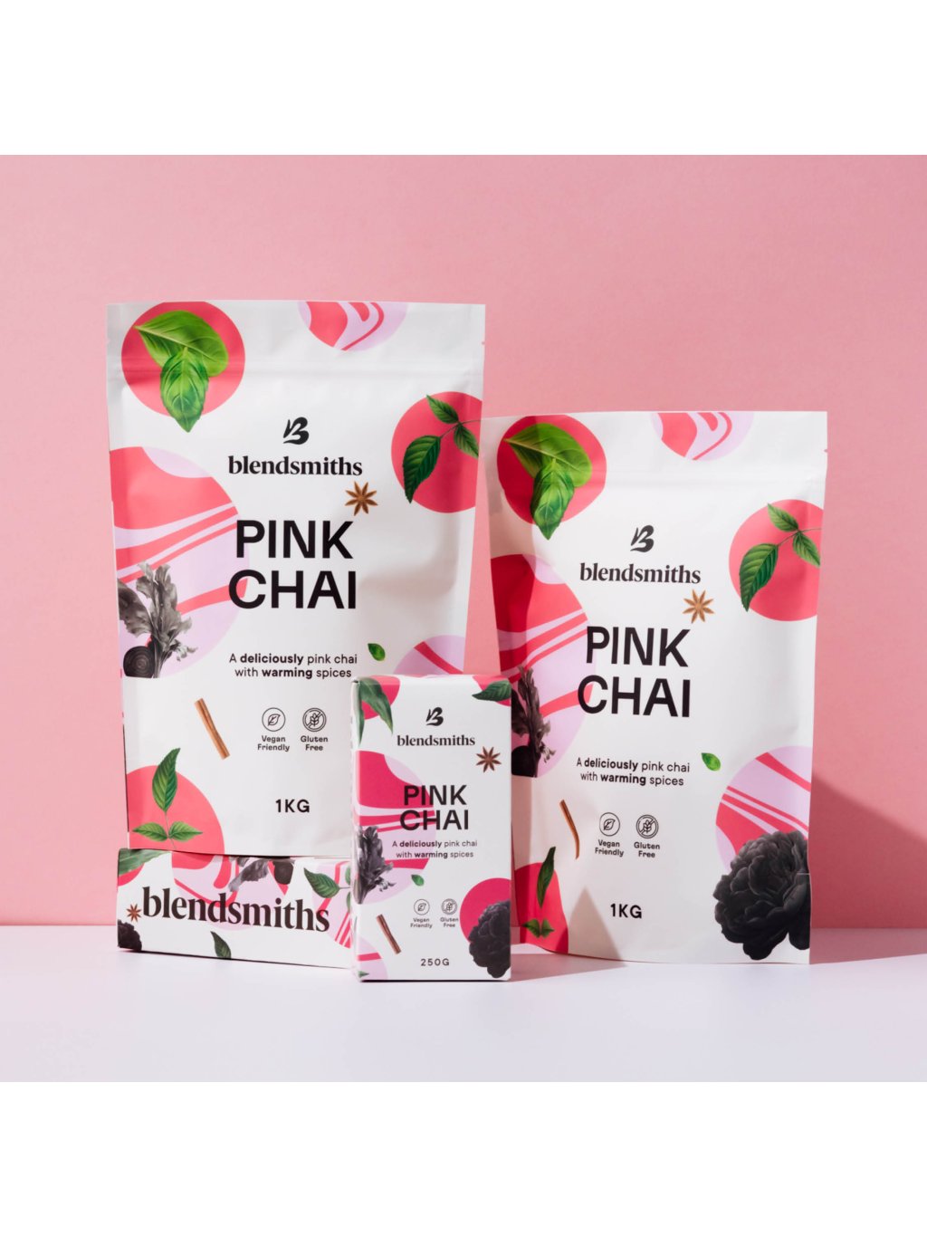 Pink Chai od Blendsmiths je živelná a chutná směs připravená ke smíchání s mlékem dle vašeho výběru. Neuvěřitelně lahodná směs červené řepy a několika druhů aromatického koření vás odzbrojí svou krásou a chutí. Hoďte starosti za hlavu, nohy na stůl a užijte si svoji chvilku s Blendsmiths. Praktické 250g balení si můžete vzít kamkoliv s sebou.