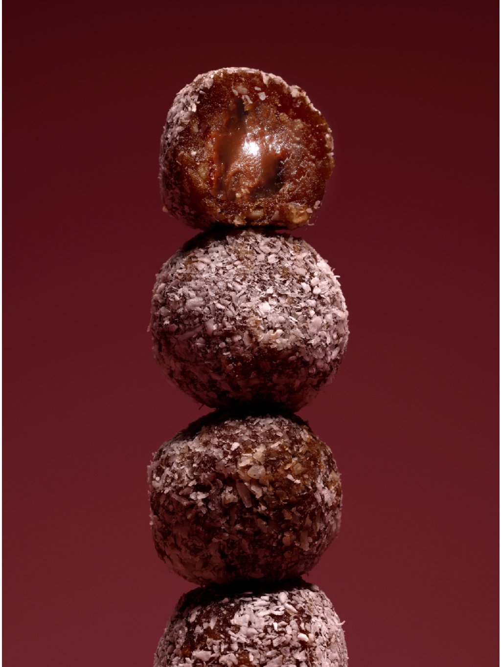 Složení: Datle, lískové ořechy, cizrnová mouka, lískové máslo, vláknina z kořene čekanky, kokosové vločky