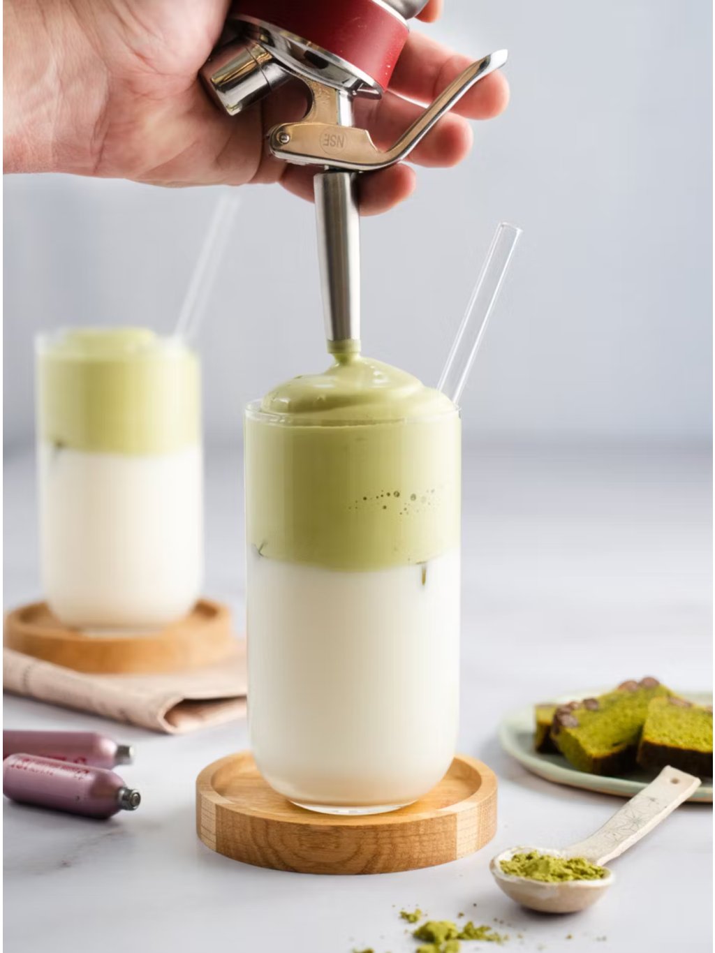 - Vytlačte perfektně nadýchanou šlehačku nebo pěnu přímo na pokrmy či nápoje.