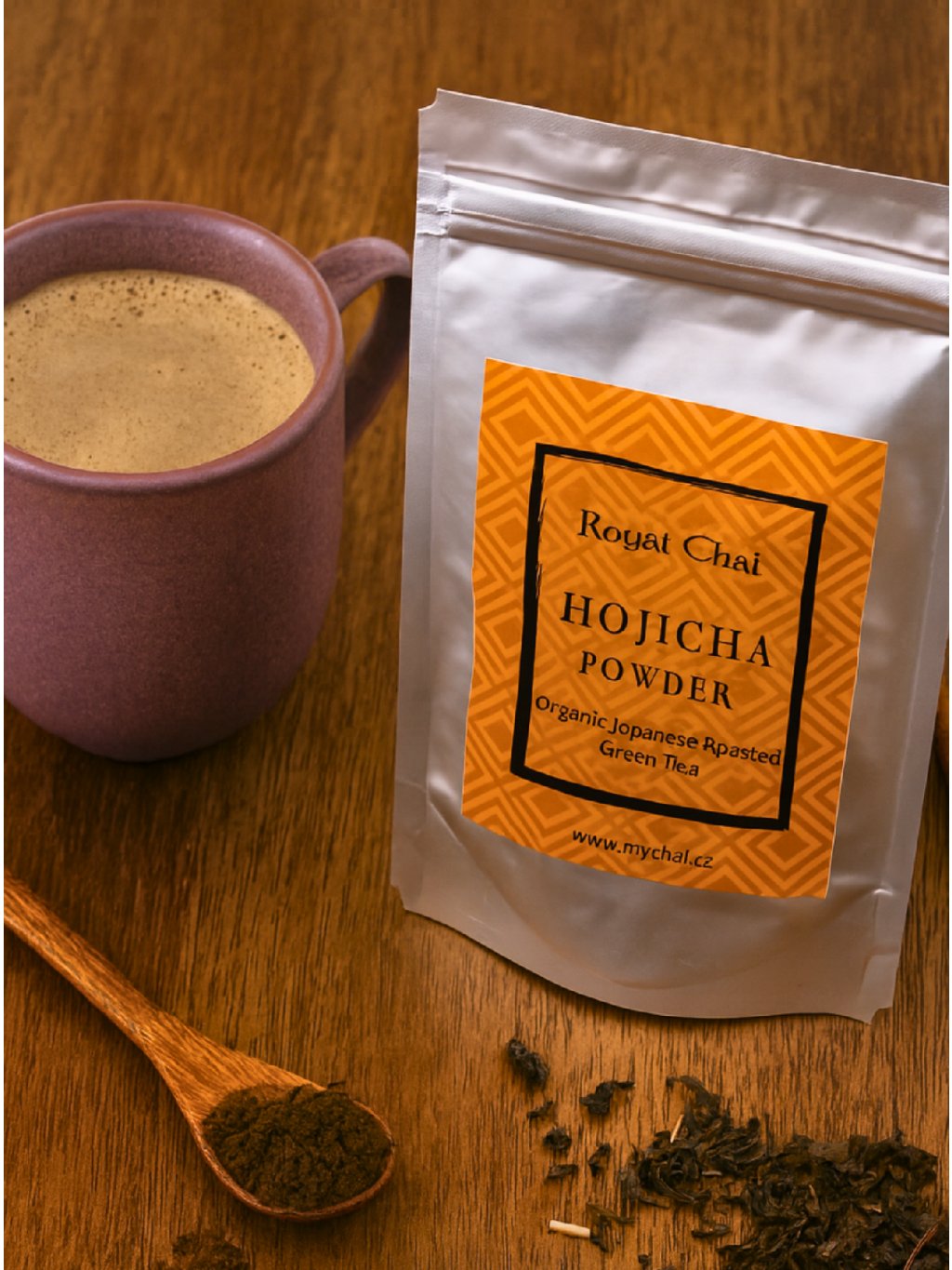 Hojicha je mladší sestra matchy – ale s vlastní osobností. Vzniká jemným mletím čaje Hojicha, jehož lístky jsou nejprve pečené, díky čemuž má výrazně oříškovou až karamelovou chuť a minimální obsah kofeinu.