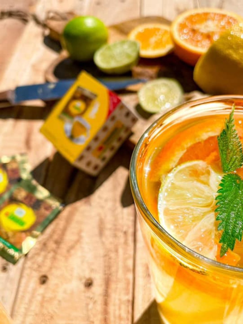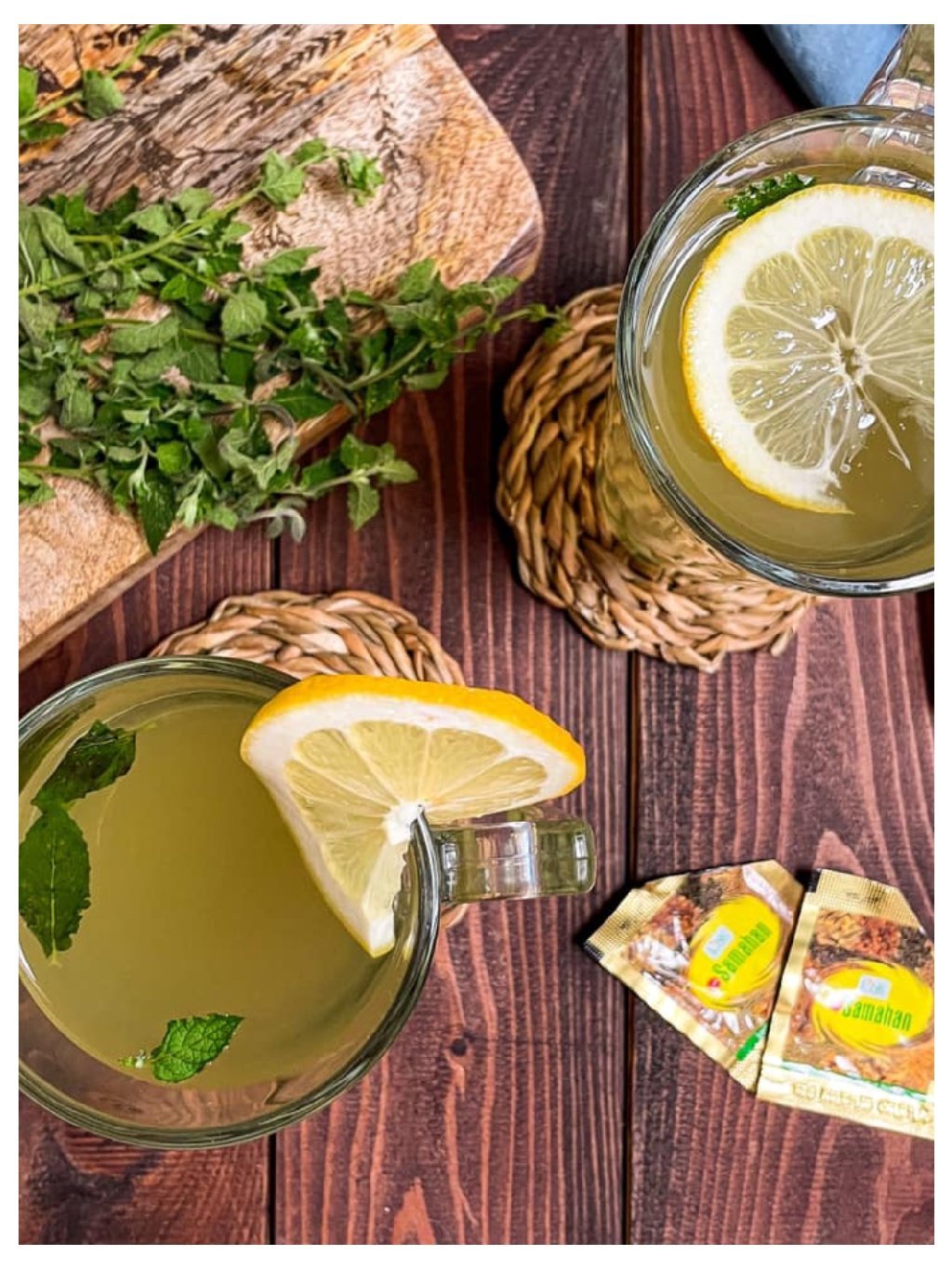 Studený nápoj: Sáček Samahanu rozmíchejte ve studené vodě. Přidejte led, plátky citrusů a listy máty.
