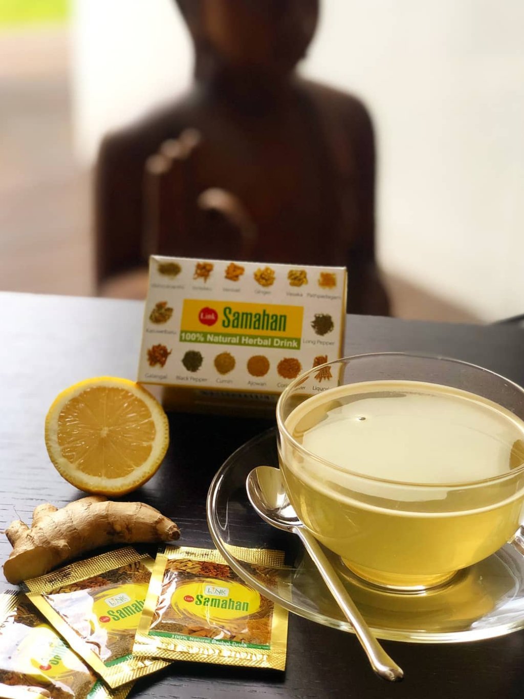Samahan je známý také jako ajurvédský zázrak. Jedná se prastarou léčivou směs ze 14 ajurvédských bylin a koření, mezi kterými převládá zázvor, pepř, koriandr, kmín a lékořice. Kombinace těchto složek vytváří jedinečný koktejl účinný především proti nachlazení a na posílení imunitního systému. Vhodné do vašeho baru, restaurace, bistra, obchodu či přímo do vašeho domova.
